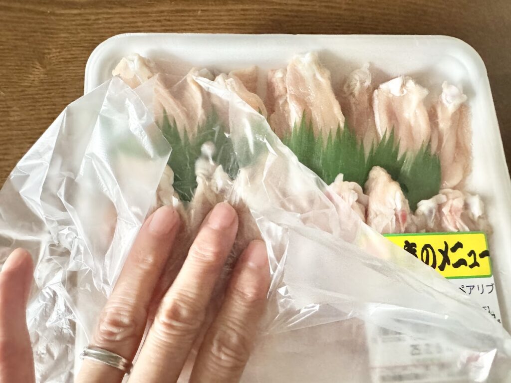 スーパーの袋が開かないときは肉のパックを使う